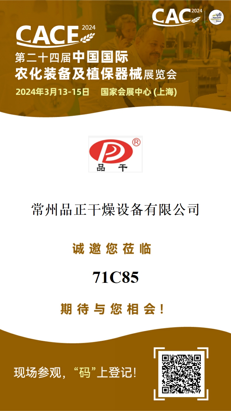 展會地點(diǎn):國家會展中心(上海),時間:2024年3月13-15日,展位號:71C85, 常州品正干燥設(shè)備有限公司誠邀您蒞臨,期待與您相會!